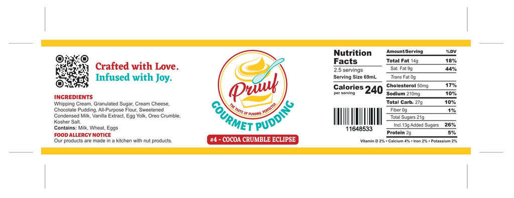 Pruuf#4 is a chocolate lover’s paradise, combining rich, velvety chocolate pudding with the irresistible crunch of chocolate cookies. Each spoonful is an indulgent journey of intense cocoa flavor and creamy smoothness, perfectly complemented by the bold texture of crumbled Oreos. Crafted with high-quality ingredients, Pruuf#4 delivers a decadent balance of smooth and crunchy, making it the ultimate treat for those who crave a deeply satisfying chocolate experience.